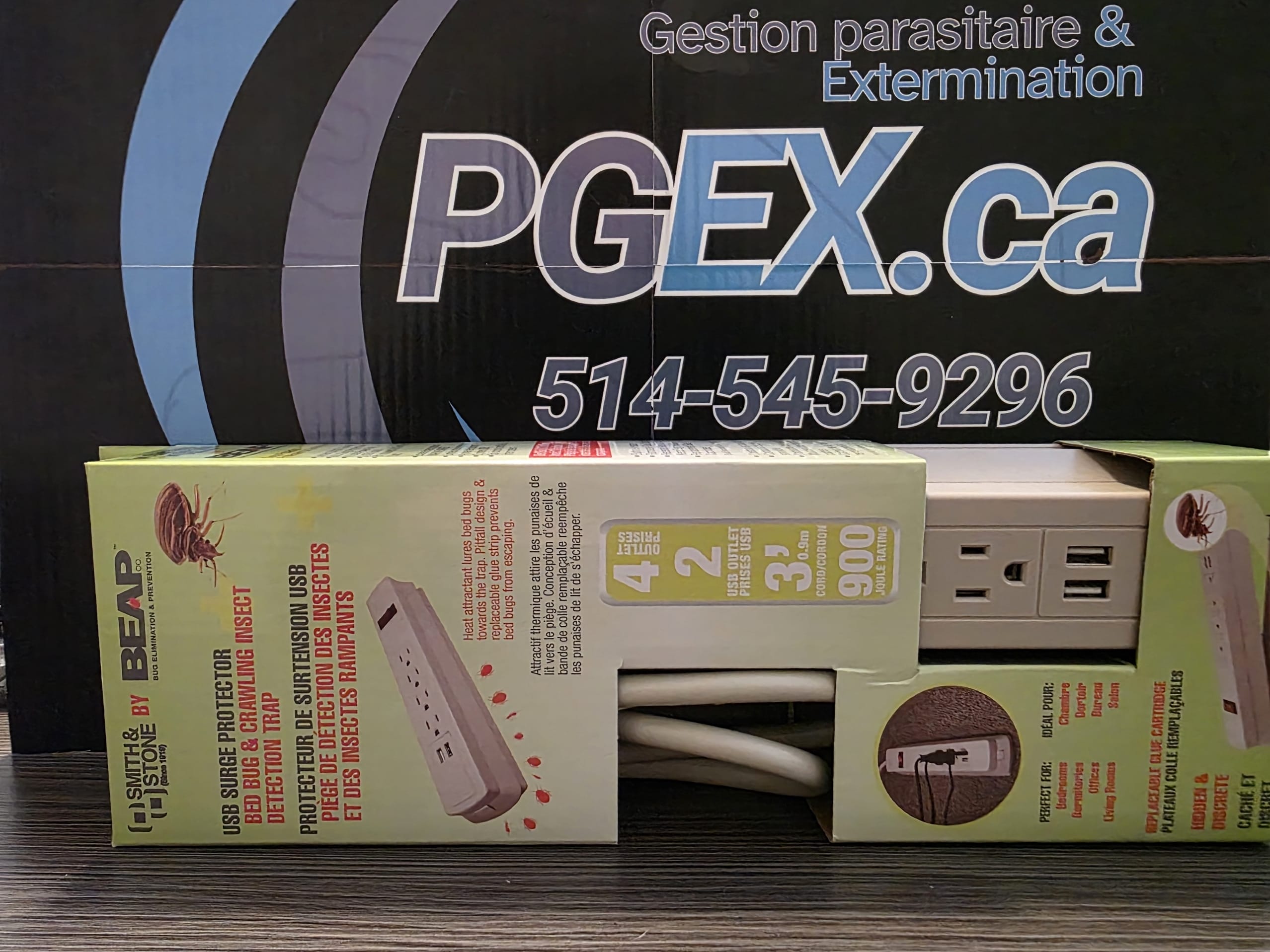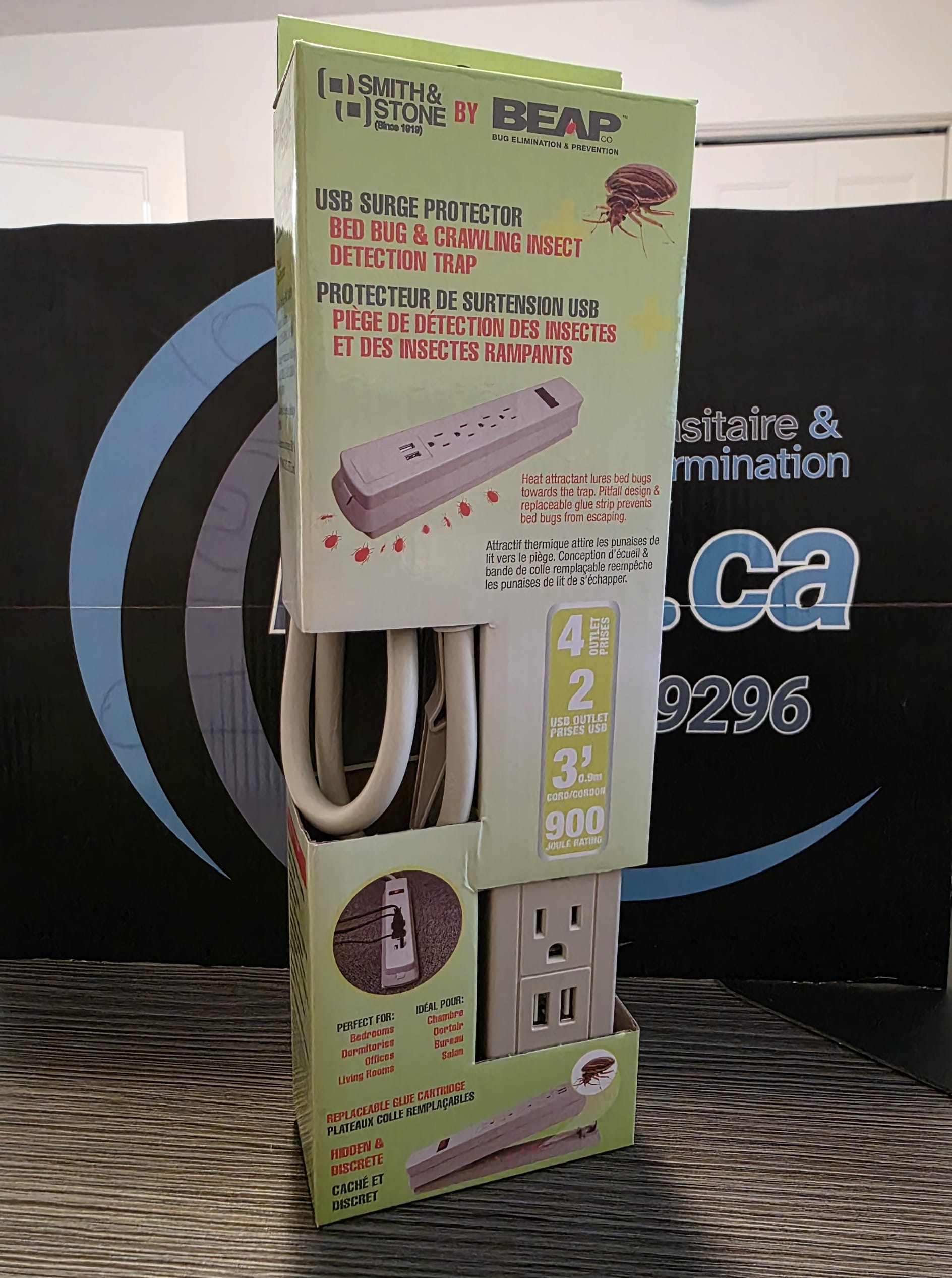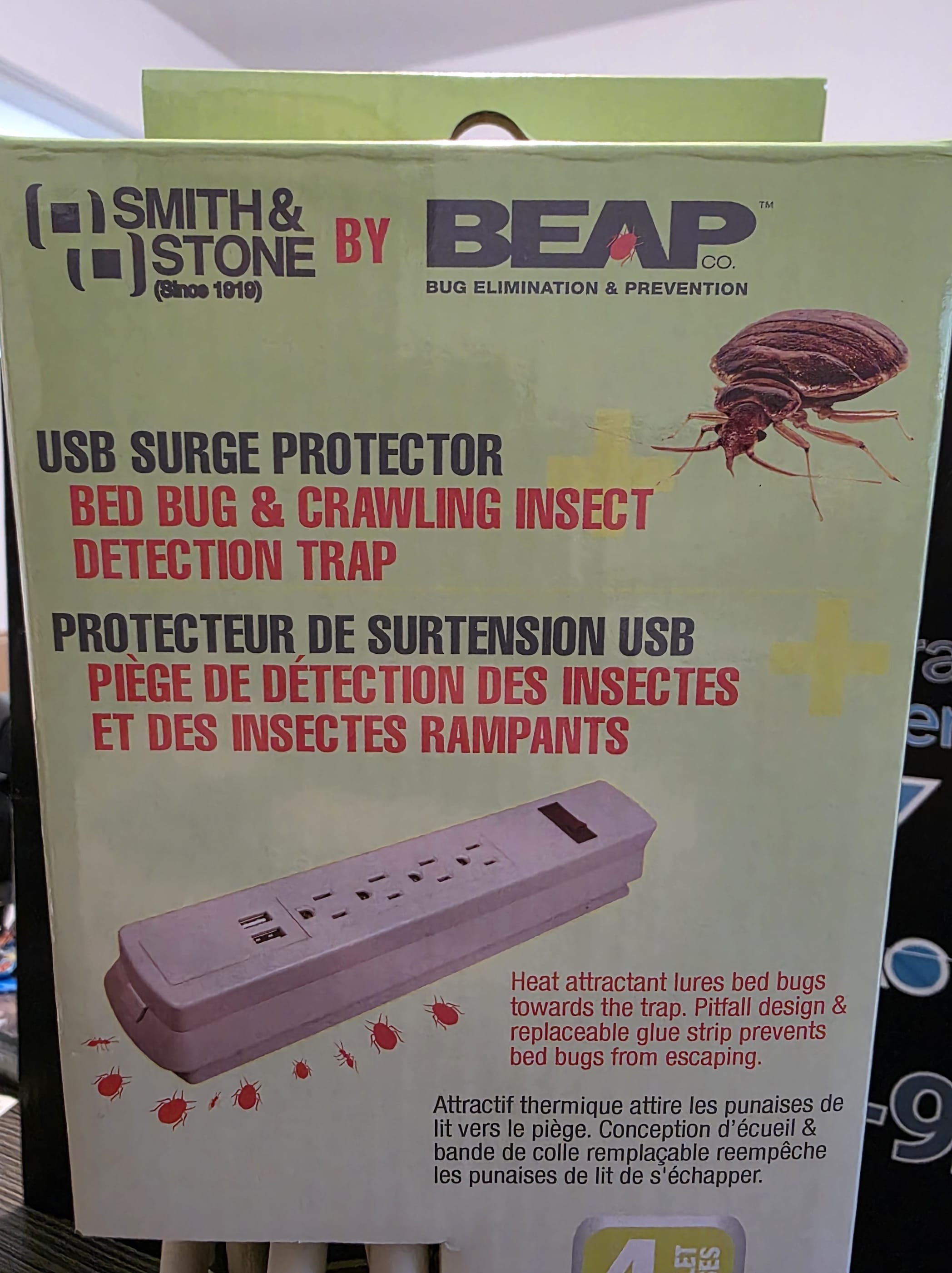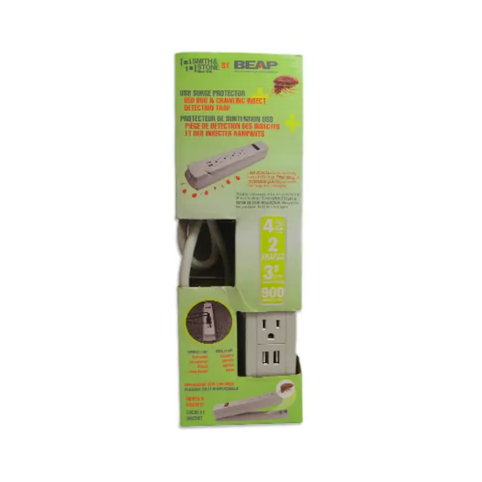 S’intégrant discrètement au décor en servant à la fois de barre d’alimentation à 6 prises et de parasurtendeur, ce piège permet une surveillance efficace et discrète des punaises de lit.
