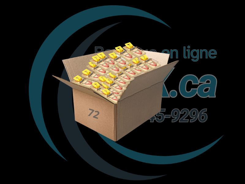 Ce format économique en boîte de 72 pièges est idéal pour les gestionnaires immobiliers, commerces, restaurants, dépanneurs, ou toute entreprise nécessitant un contrôle continu des souris sur de grandes surfaces.