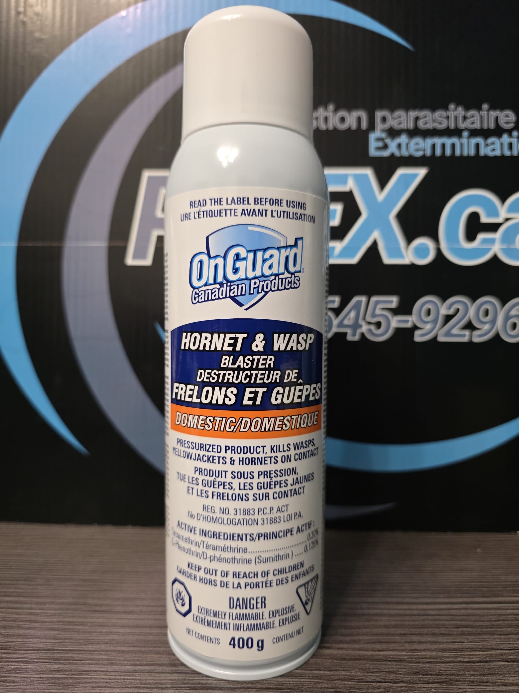 Pour le contrôle extérieur des nids de guêpes et frelons qu’ils soient situés dans les arbres, attachés aux bâtiments ou partout où les nids sont construits.